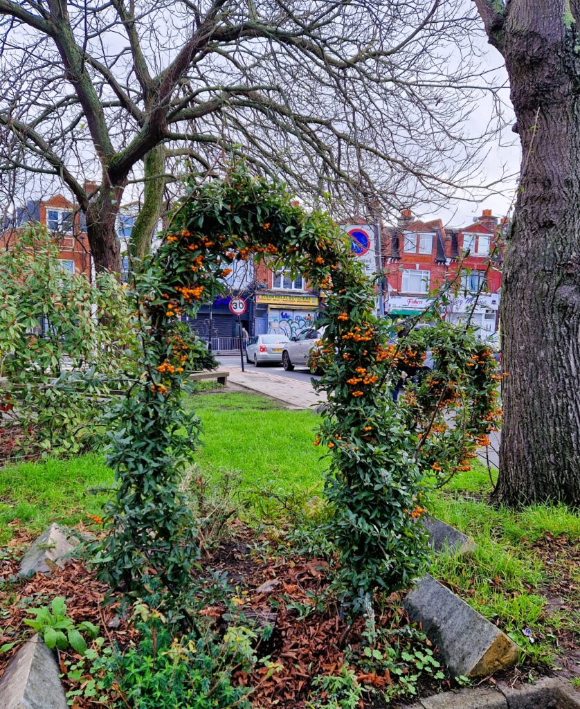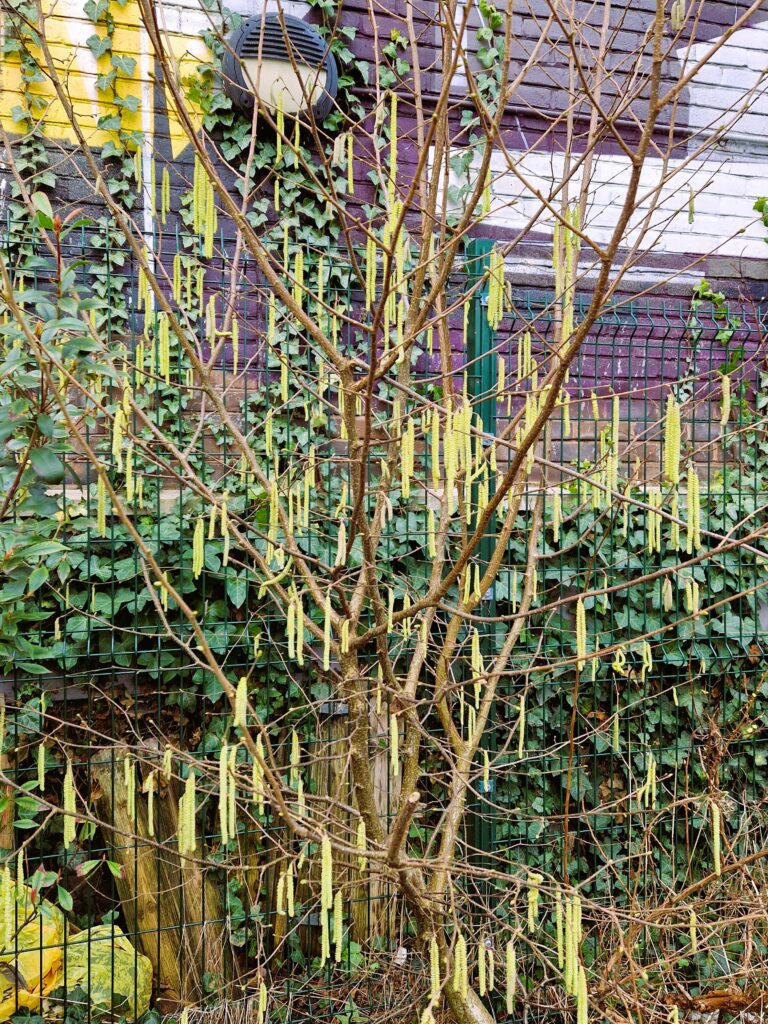 We love some of the plants in our community garden! Actually we love them all. Thank you to Mandy for creating this beautiful arch, now covered in berries. And we admired the catkins during our workday on Saturday.
